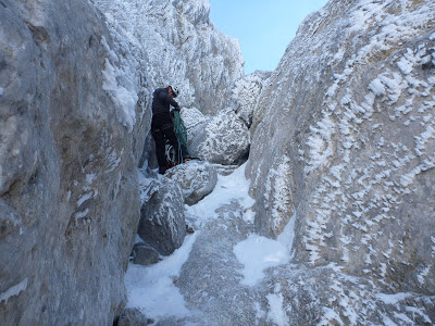 Du coup, on s'est bien caillé toute la journée et on a moins apprécié la voie par rapport à d'habitude. La goulotte, elle, est en excellente conditions, tout comme le couloir de gauche et la quintana.